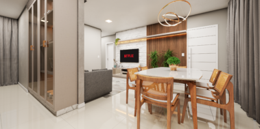 Apartamento 102, 1 suíte + 1 dormitório, sala e cozinha integrada, banheiro social, área de serviço, pátio privativo com Churrasqueira. Vaga de Garagem descoberta. (60,90 m² + 15,15m² área privativa)