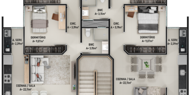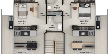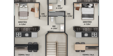 O Empreendimento terá 4 pavimentos com 2 apartamentos por andar, todos serão 2 dormitórios com 1 suíte.