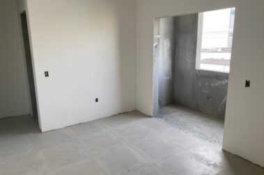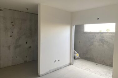 Os apartamentos terão o mesmo padrão de acabamento, porcelanato, vidros temperados, portas brancas, fechaduras Pado, massa corrida e alguns detalhes em gesso.